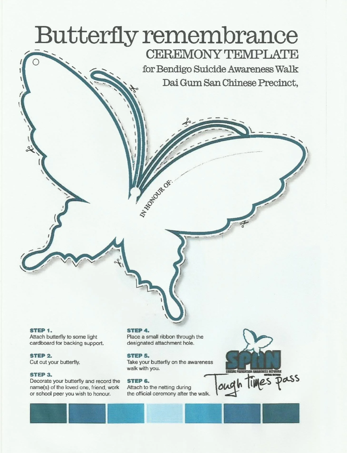 The SPAN walk is fast approaching. If you are hoping to attend the walk and place a butterfly in remembrance of your loved ones on the net during the Remembrance ceremony please print a copy of this butterfly.